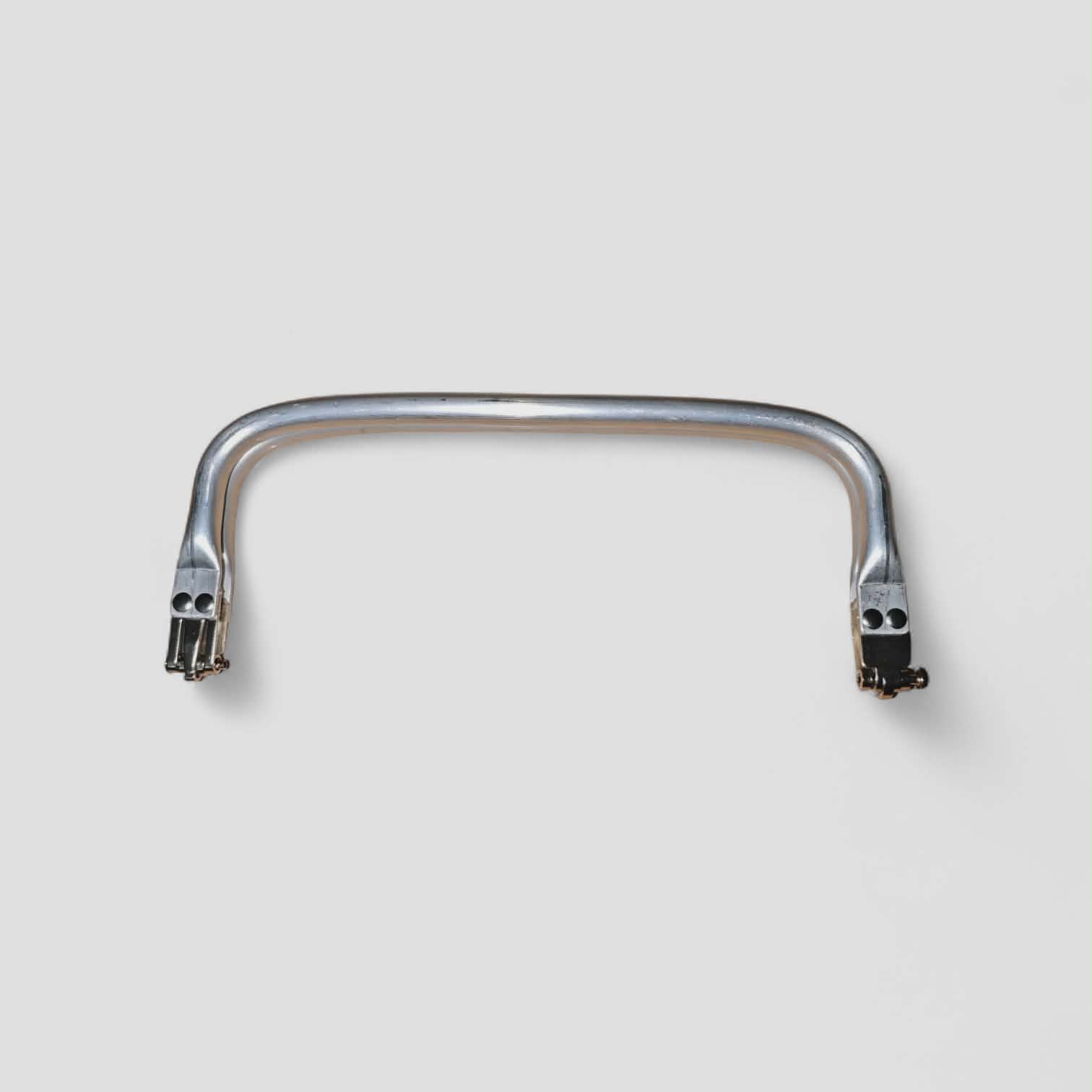 Κομψό μεταλλικό χερούλι τσάντας σε ασημί απόχρωση, ιδανικό για την κατασκευή ή ανανέωση χειροποίητων τσαντών. Ο καμπύλος σχεδιασμός του προσφέρει άνετο κράτημα και προσθέτει μοντέρνα και κομψή αισθητική σε κάθε δημιουργία.